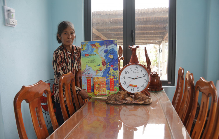 Ở cuối xóm, trong căn nhà còn thơm mùi xi măng, ông Phạm Văn Hòa (sinh năm 1967) lặng lẽ cúi nhặt nồi xoong, thau chậu rửa sạch, xếp lại vào góc bếp. Lau đi những giọt mồ hôi trên trán, ông cho biết, có được mái nhà vững chãi che mưa che nắng, bà con nơi đây mới dám yên tâm quay lại ruộng đồng, từng bước gây dựng lại cuộc sống.