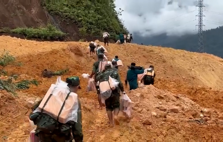Ngay khi mưa giảm, mực nước các sông rút dần, từng hàng dài bộ đội Quân khu 5 lầm lũi cõng hàng vượt núi đi vào các ngôi làng vùng cao ở các huyện Bắc Trà My, Nam Trà My cũ (Đà Nẵng) để tiếp tế cho người dân vùng cô lập.