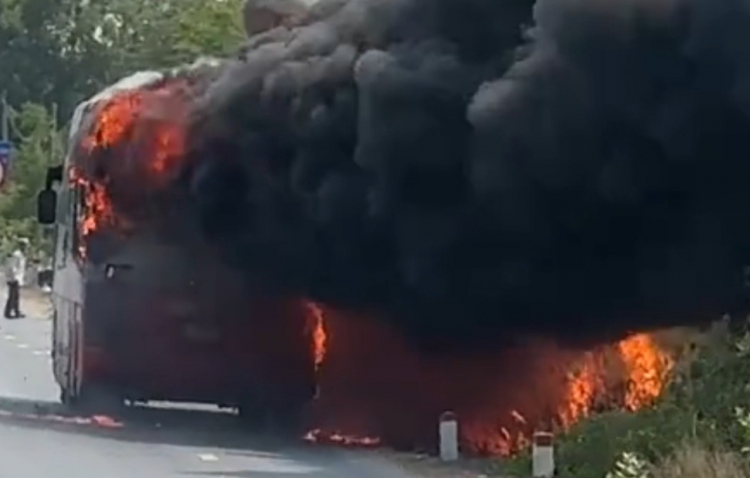 Khoảng 14g ngày 11/4, một ô tô khách đang chạy qua xã Tu Bông bất ngờ cháy từ phía đuôi. 3 người trên xe, bao gồm tài xế may mắn thoát nạn.