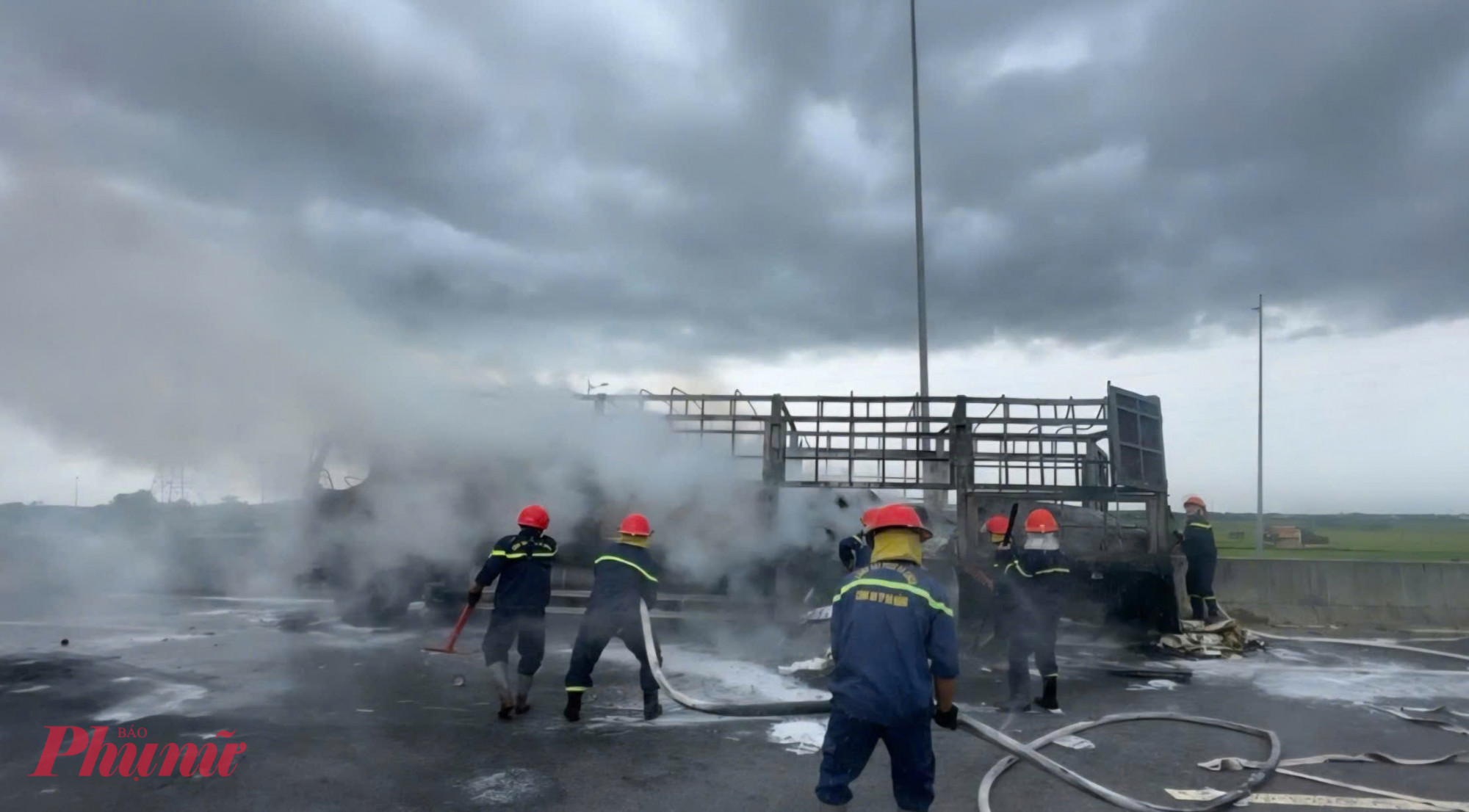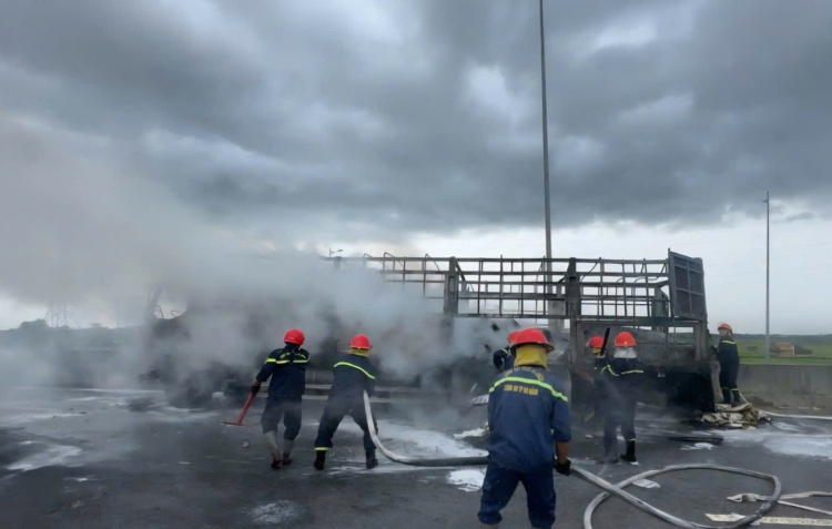 PNO - Một chiếc xe tải khi đang lưu thông trên cao tốc Đà Nẵng-Quảng Ngãi thì bất ngờ bốc cháy, lửa thiêu rụi hàng hóa trên xe.