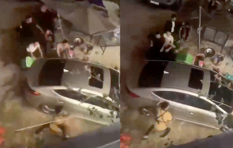 PNO - Trong đêm, chiếc xe ô tô liên tục tăng ga lùi rồi tiến khi xung quanh có nhiều người cầm gậy, vật dụng đập phá xe.