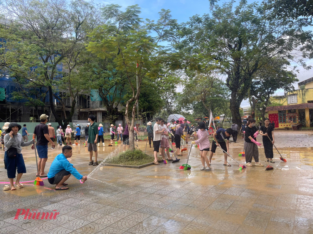 PNO - Tranh thủ lũ rút dần, thầy cô vùng lũ TP Huế tạm gác việc nhà, đến trường dọn dẹp vệ sinh với mong muốn sớm đón học sinh trở lại trường.