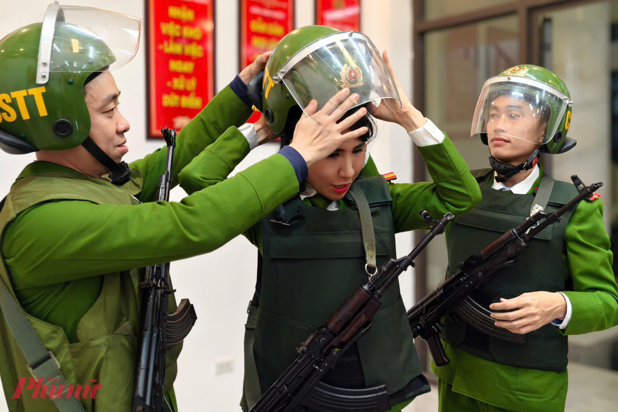 | Cán bộ, chiến sĩ được quán triệt các nội dung nghiệp vụ, đồng thời kiểm tra kỹ lưỡng trang phục, vũ khí và công cụ hỗ trợ trước khi thực hiện nhiệm vụ. |